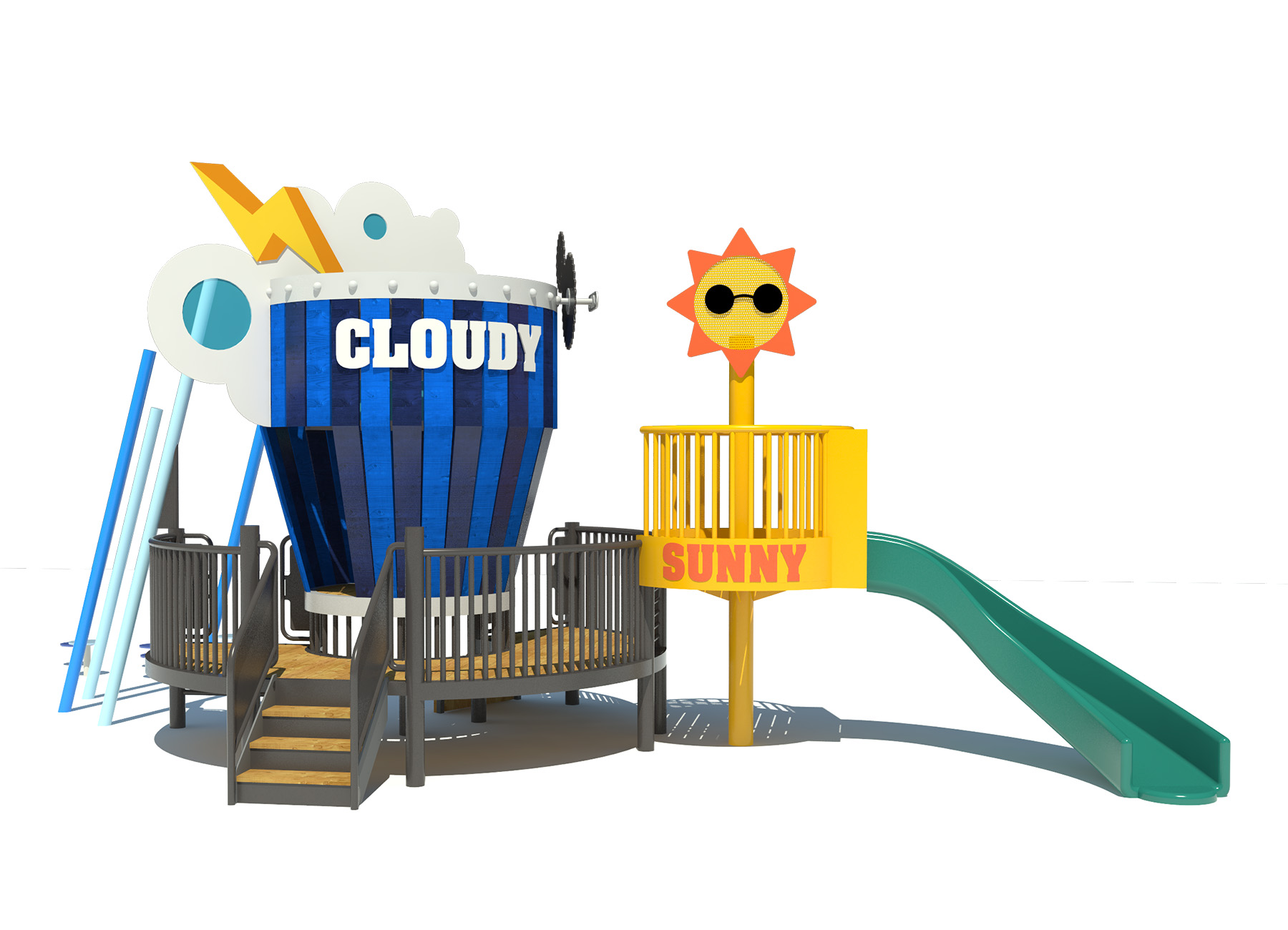 오픈슬라이드2종, 사다리오르기2종, 암벽오르기, 구름사다리, 소방호스, 원통통과하기, 인지놀이패널